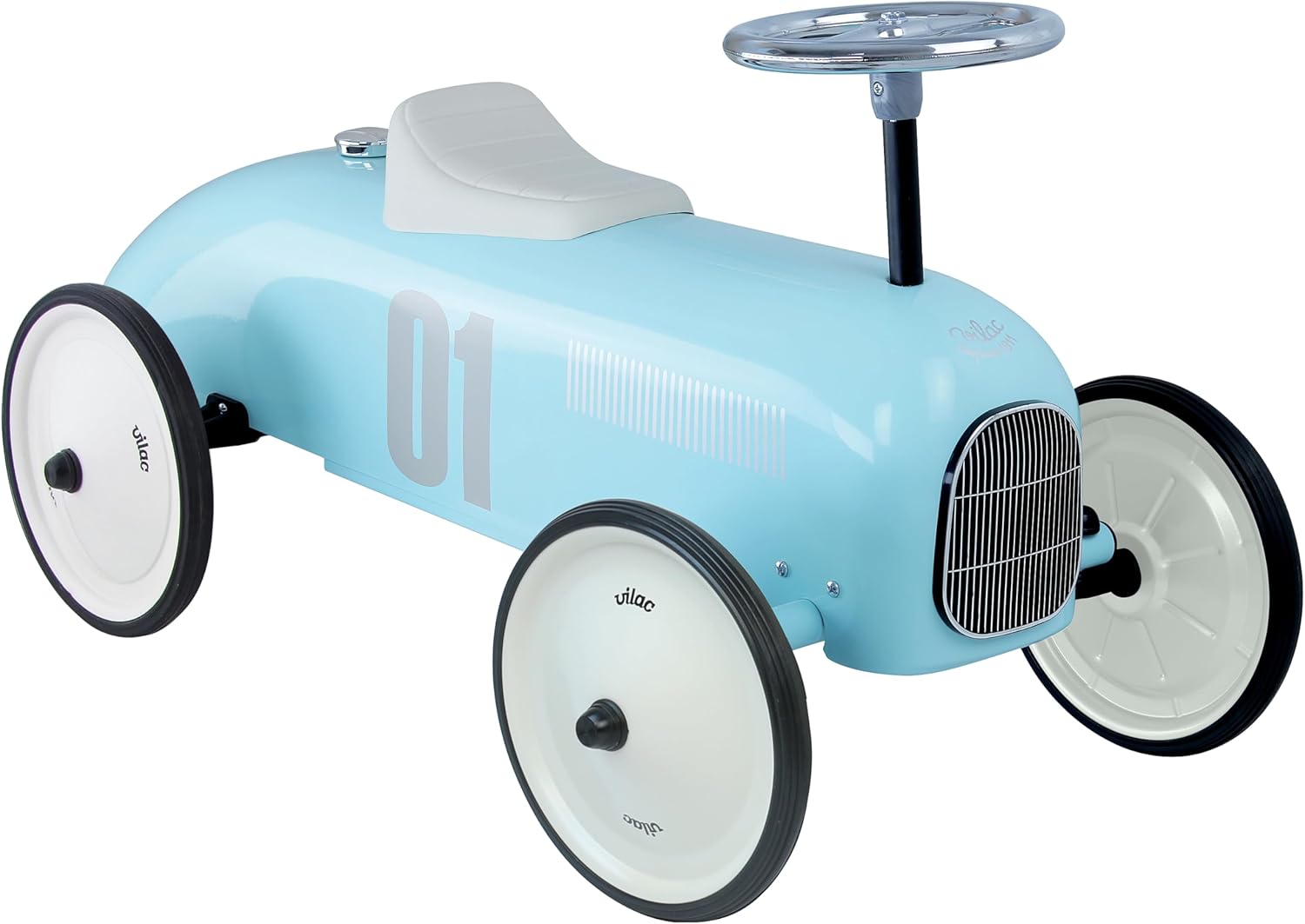 Stylish vintage metal car, perfect for budding little racers! In addition to being fun, this beautiful vehicle helps develop motor skills and coordination in children. With its refined retro look, it also becomes a wonderful decorative object for an elegant home. Equipped with large but silent rubber wheels and a directional steering wheel for easy maneuvering, it guarantees hours of fun and stimulating play.