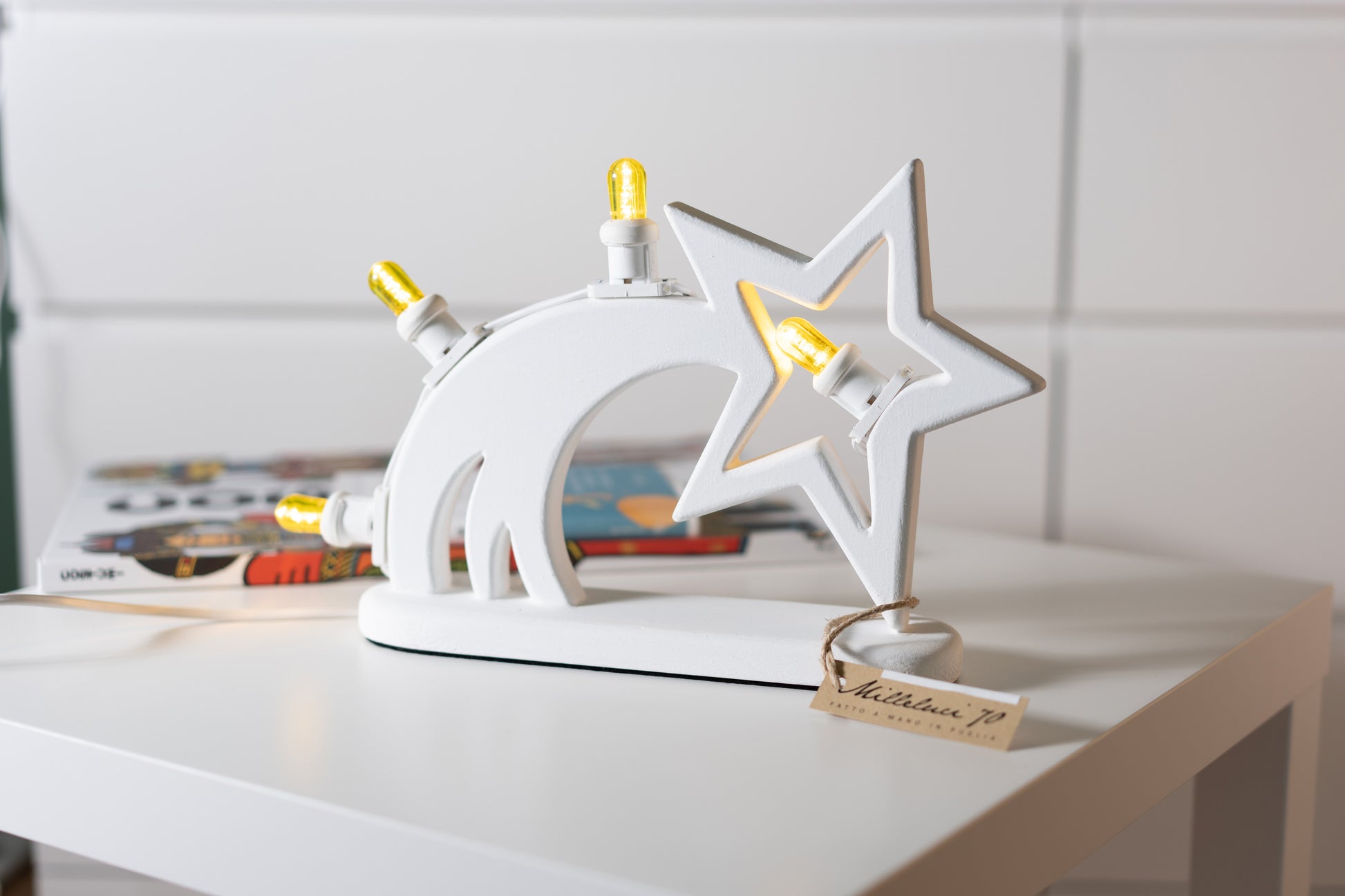 Illuminazione LED Incorporate nella struttura dell'oggetto sono presenti luci LED che, oltre a decorare, illuminano delicatamente l'oggetto stesso e l'ambiente circostante. Queste luci a risparmio energetico offrono una luminosità calda e accogliente, perfetta per creare un'atmosfera festosa o romantica.